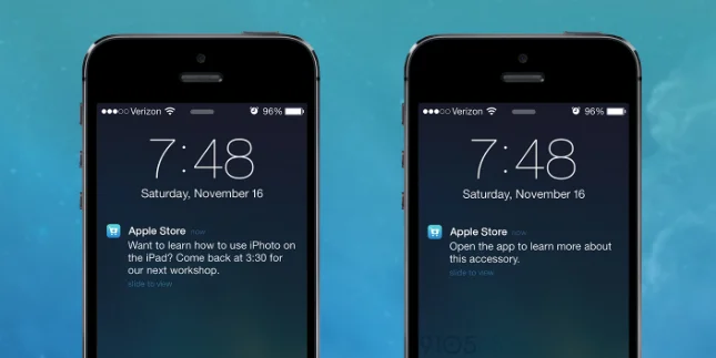As of a few days ago, Apple started switching on iBeacons in their retail stores. As soon as you walk in, you are greeted with a message via a notification on your lock screen. As you approach the table of iPhones, you will be notified about the various models, prices, promotions, and all other information necessary for nudging you into a purchasing mood. The same thing applies for the wall of accessories, and every other area in the store.